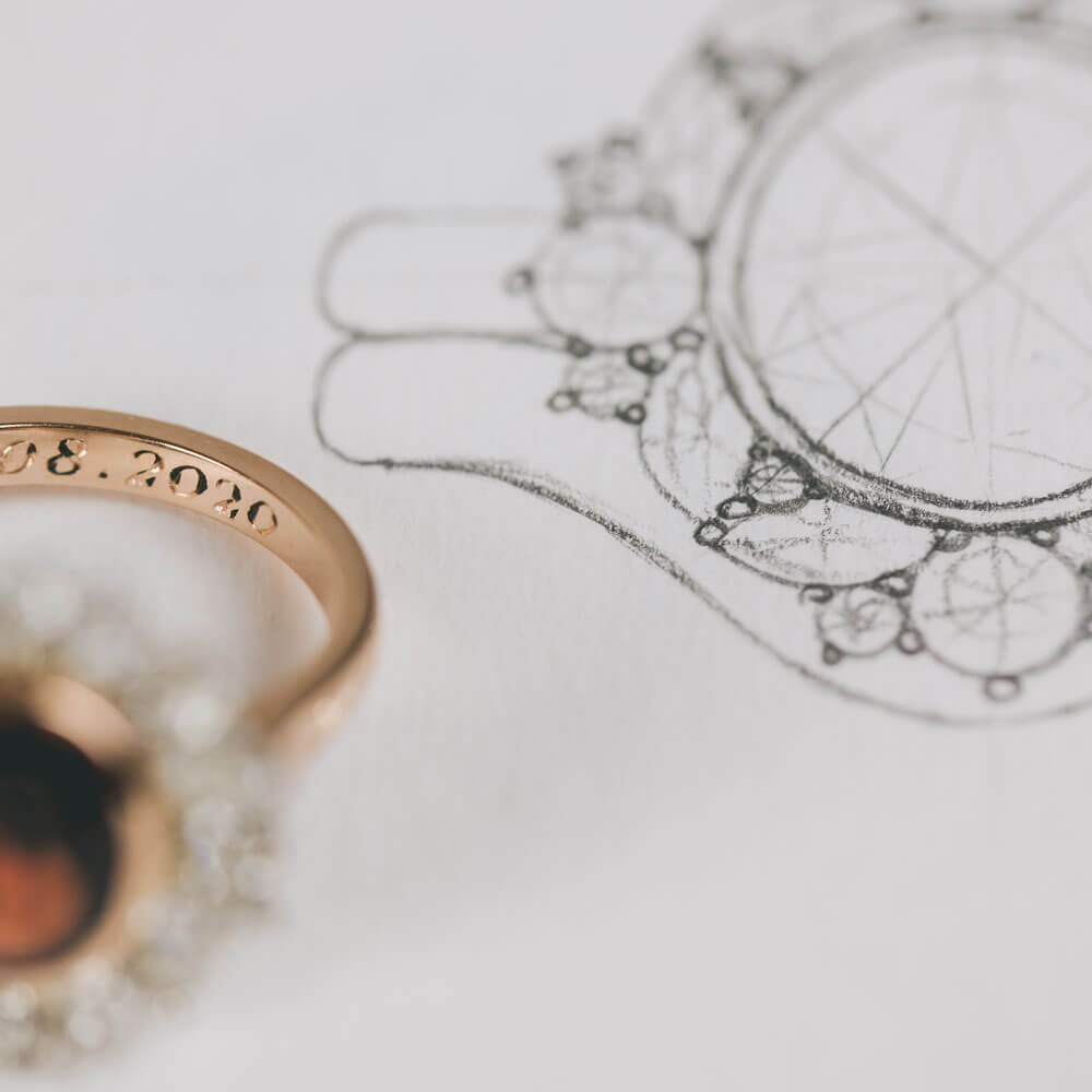 Do you need a fitted eternity ring or don't have a lot of time? That is no issue at all, even if the ring is to be a surprise. Jodie can create a presentation sketch of your design to gift to your loved one; they can then have the final say in the details, and we can make sure the rings fit perfectly together. There is something very romantic in starting the project as a surprise but finishing it together.