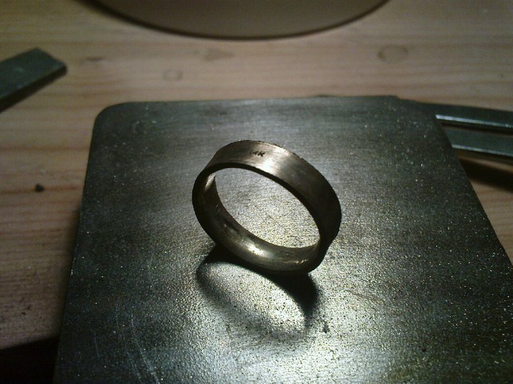 I turned this ring inside out and resoldered it so it’s profile would work with the other elements of the ring in a flat, modern style.