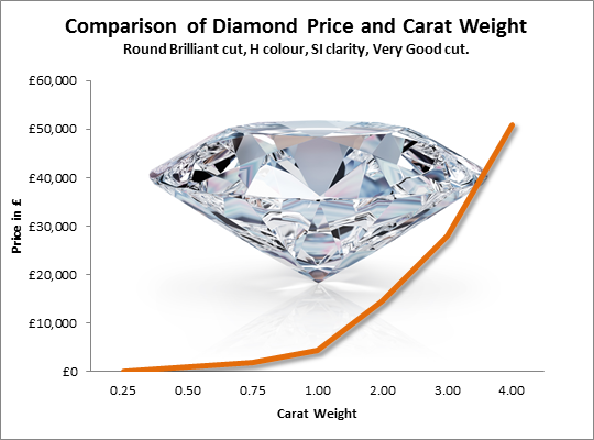 The larger the carat size of a stone, the higher the value. This is down to scarcity value. Large pieces of gemstone which are ideal for cutting are rarer than smaller pieces; therefore they demand a higher cost per carat.