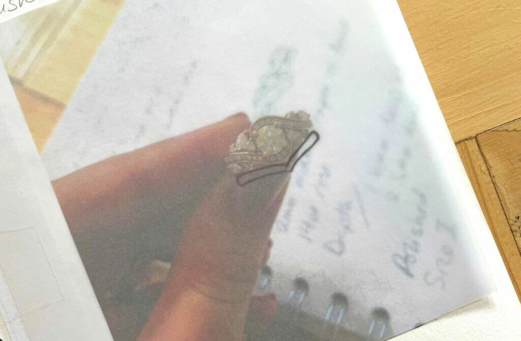 We then talked about Nathan’s ring. He still lives in America and they are in the process of merging their lives together so she was doing this solo – she wanted his ring to be a surprise and full of meaning to them both. This transatlantic couple have very happy memories of visits to the Scottish highlands, especially the areas around Lockness. I took elements of the skyline from their holiday photos and merged them together to create a skyline to use in his design.