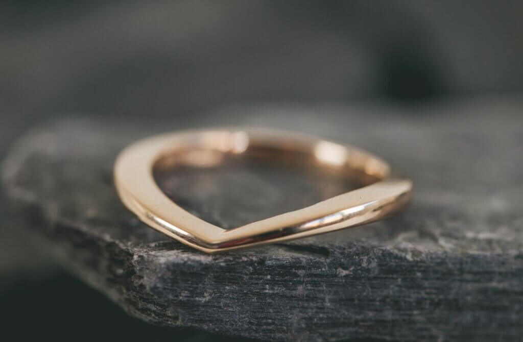 The wishbone shape is a great option as a fitted band as it looks intentional and elegant when worn in it’s own. Curved shapes to sit alongside settings give a more snug fit but look like they are missing their partner when worn on their own.