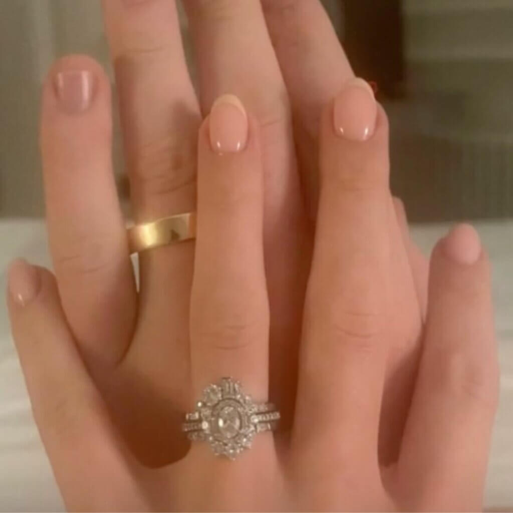 Alix is a patisserie chef, so won’t be able to wear her intricate wedding ring while working. She plans on having a plain yellow gold band using some more of Tom’s mother’s jewellery as an everyday wedding ring that she can wear all the time.